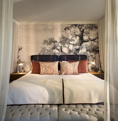 Los pasillos conducen a solo 16 suites, apartadas en tranquilos jardines y rodeadas de terrazas amuebladas, que conforman el lujoso alojamiento. Cada uno es privado y está elegantemente decorado, ninguno mejor que el anterior, con un enfoque fresco al estilo colonial que invita a sentirse como en casa. Relájate en sus tumbonas al aire libre para disfrutar de un café y contemplar el magnífico amanecer.