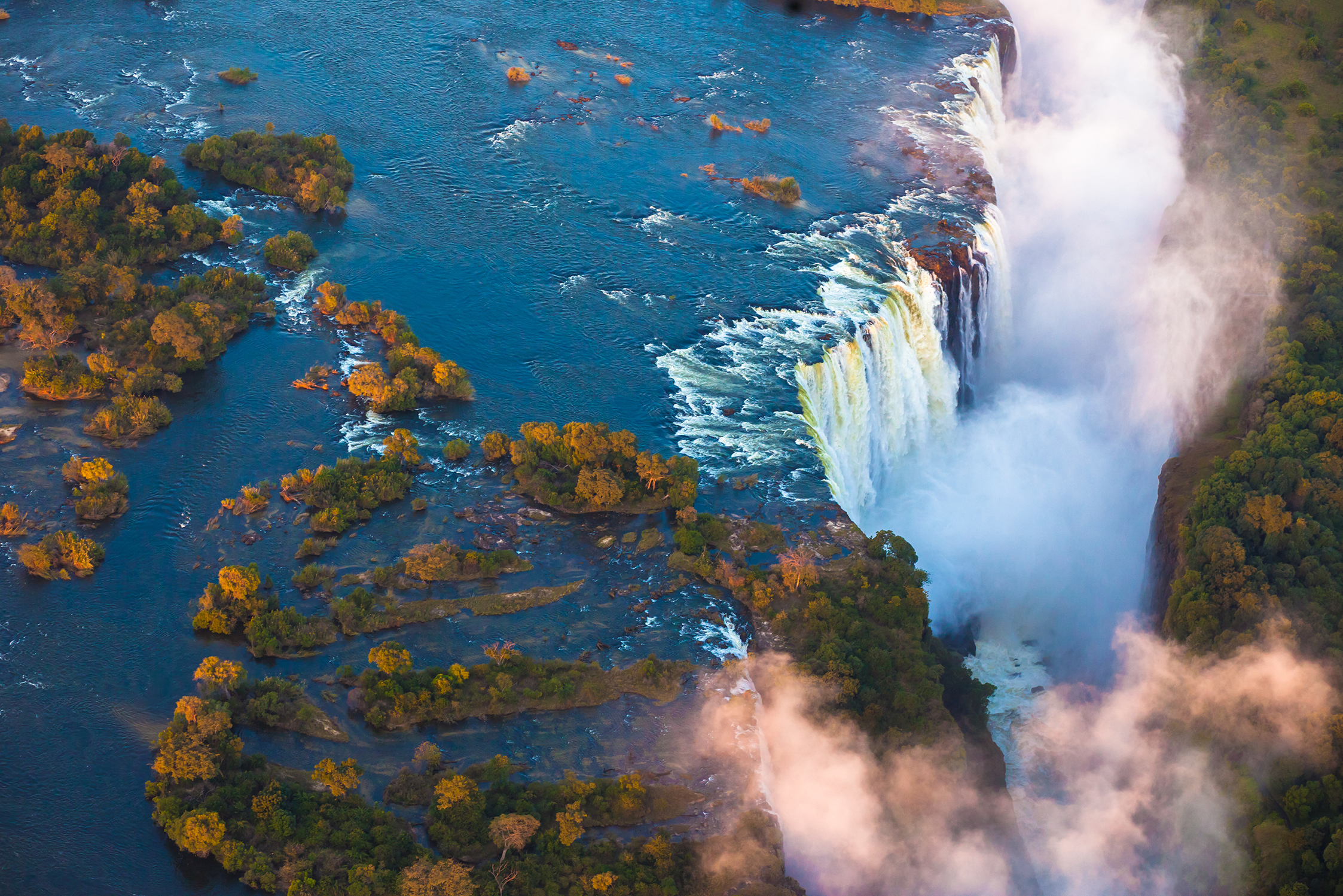 Siendo uno de los espectáculos físicos y naturales de abrumantes ráfagas de aguas de prácticamente una milla de largo, de las que podrás degustar realizando exclusivos safaris guiados y vuelos en helicóptero privado -ideales para una Luna de Miel en Zambia-. Incluso infinidad de actividades para los seguidores de la adrenalina, como el rafting o puénting, con horizontes de vegetación arbolada constante con el rocío de la madrugada, y en toda su gloria.